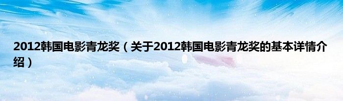 本文关于2012韩国电影青龙奖的基本详情介绍就讲解完毕,希望对大家有所帮助。