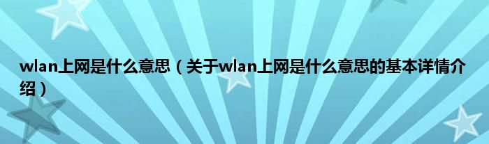 本文关于wlan上网是什么意思的基本详情介绍就讲解完毕,希望对大家有所帮助。