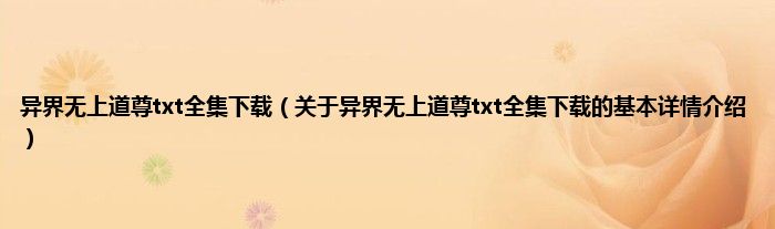 异界无上道尊txt全集下载(关于异界无上道尊txt全集下载的基本详情介绍)