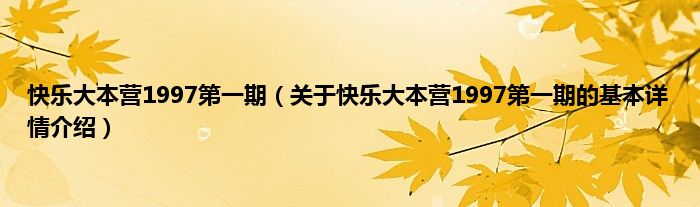 本文关于快乐大本营1997第一期的基本详情介绍就讲解完毕,希望对大家有所帮助。