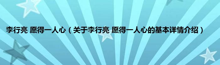 本文关于李行亮 愿得一人心的基本详情介绍就讲解完毕,希望对大家有所帮助。