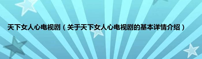 本文关于天下女人心电视剧的基本详情介绍就讲解完毕,希望对大家有所帮助。