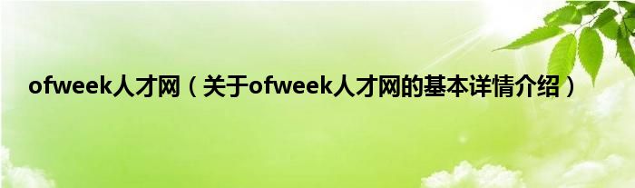 本文关于ofweek人才网的基本详情介绍就讲解完毕,希望对大家有所帮助。