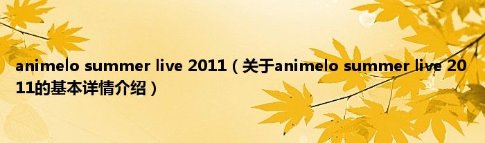 本文关于animelo summer live 2011的基本详情介绍就讲解完毕,希望对大家有所帮助。