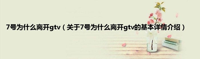 本文关于7号为什么离开gtv的基本详情介绍就讲解完毕,希望对大家有所帮助。
