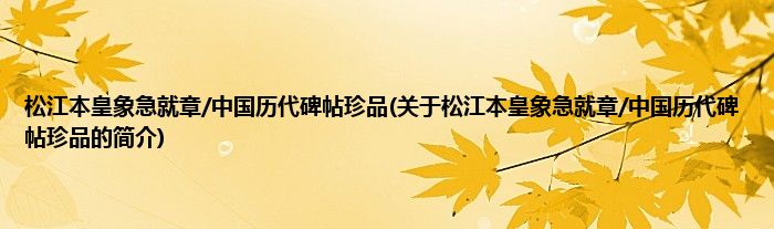 本文关于松江本皇象急就章/中国历代碑帖珍品的简介就讲解完毕,希望对大家有所帮助。