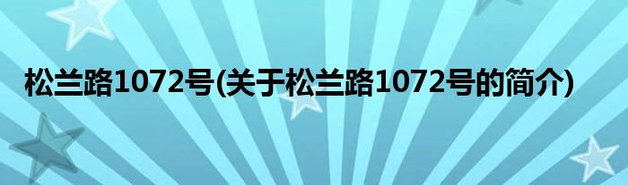大家好,松兰路1072号,关于松兰路1072号的简介很多人还不知道,现在让我们一起来看看吧!