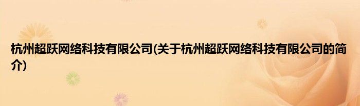 本文关于杭州超跃网络科技有限公司的简介就讲解完毕,希望对大家有所帮助。