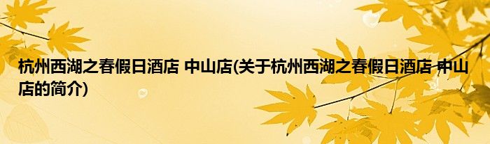 大家好,杭州西湖之春假日酒店 中山店,关于杭州西湖之春假日酒店 中山店的简介很多人还不知道,现在让我们一起来看看吧!