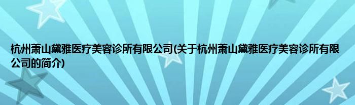 本文关于杭州萧山黛雅医疗美容诊所有限公司的简介就讲解完毕,希望对大家有所帮助。