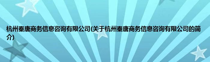 本文关于杭州秦唐商务信息咨询有限公司的简介就讲解完毕,希望对大家有所帮助。