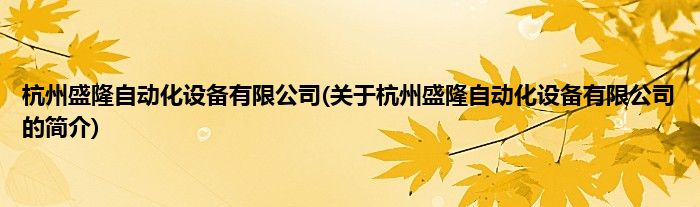 本文关于杭州盛隆自动化设备有限公司的简介就讲解完毕,希望对大家有所帮助。