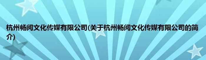 本文关于杭州畅阅文化传媒有限公司的简介就讲解完毕,希望对大家有所帮助。