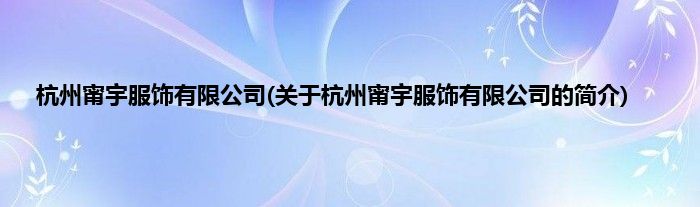 本文关于杭州甯宇服饰有限公司的简介就讲解完毕,希望对大家有所帮助。