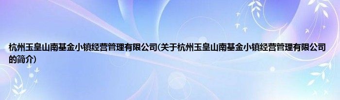 大家好,杭州玉皇山南基金小镇经营管理有限公司,关于杭州玉皇山南基金小镇经营管理有限公司的简介很多人还不知道,现在让我们一起来看看吧!