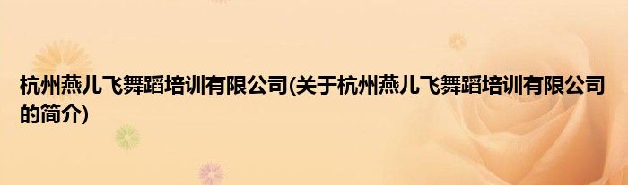 本文关于杭州燕儿飞舞蹈培训有限公司的简介就讲解完毕,希望对大家有所帮助。