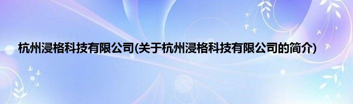 本文关于杭州浸格科技有限公司的简介就讲解完毕,希望对大家有所帮助。