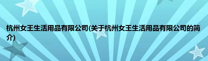 本文关于杭州女王生活用品有限公司的简介就讲解完毕,希望对大家有所帮助。