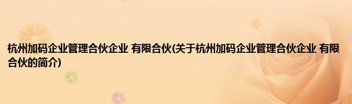 杭州加码企业管理合伙企业有限合伙(关于杭州加码企业管理合伙企业有限合伙的简介)