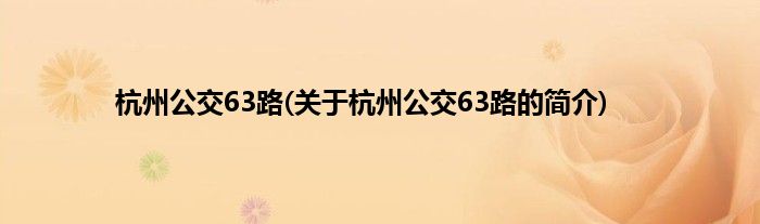 杭州公交63路(关于杭州公交63路的简介)