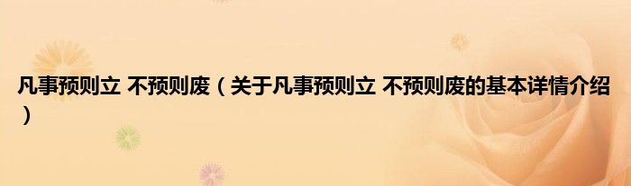 本文关于凡事预则立 不预则废的基本详情介绍就讲解完毕,希望对大家有所帮助。