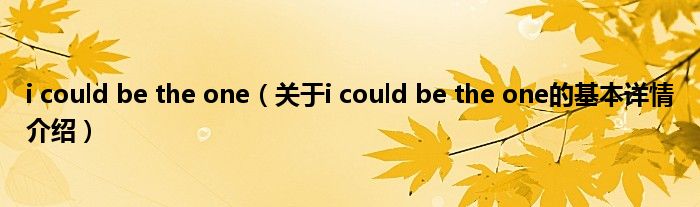 本文关于i could be the one的基本详情介绍就讲解完毕,希望对大家有所帮助。