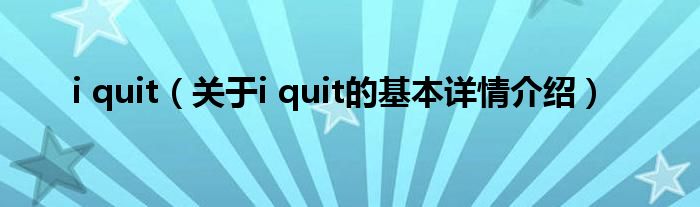 本文关于i quit的基本详情介绍就讲解完毕,希望对大家有所帮助。
