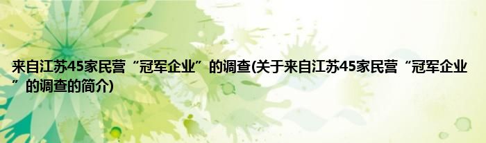 本文关于来自江苏45家民营“冠军企业”的调查的简介就讲解完毕,希望对大家有所帮助。