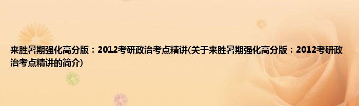 来胜暑期强化高分版:2012考研政治考点精讲(关于来胜暑期强化高分版:2012考...