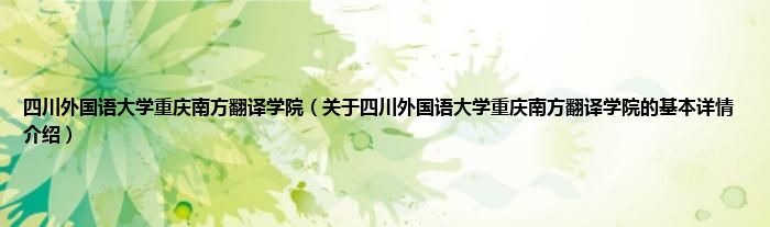 本文关于四川外国语大学重庆南方翻译学院的基本详情介绍就讲解完毕,希望对大家有所帮助。