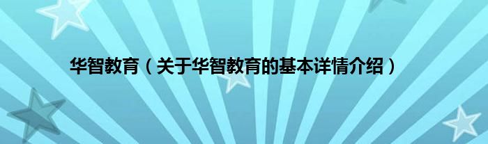 华智教育(关于华智教育的基本详情介绍)