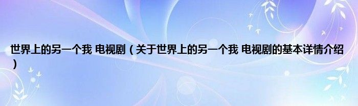 本文关于世界上的另一个我 电视剧的基本详情介绍就讲解完毕,希望对大家有所帮助。