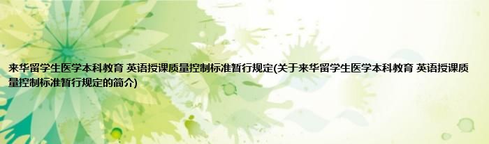 本文关于来华留学生医学本科教育 英语授课质量控制标准暂行规定的简介就讲解完毕,希望对大家有所帮助。