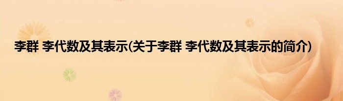 大家好,李群,李代数及其表示,关于李群,李代数及其表示的简介很多人还不知道,现在让我们一起来看看吧!