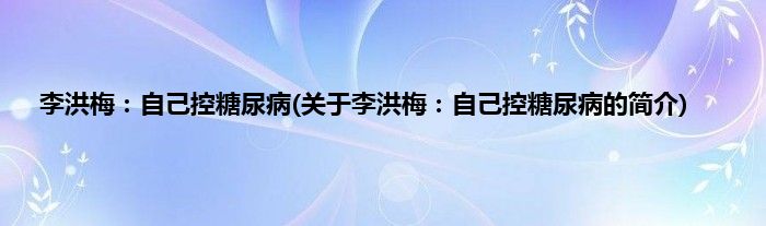 大家好,李洪梅:自己控糖尿病,关于李洪梅:自己控糖尿病的简介很多人还不知道,现在让我们一起来看看吧!