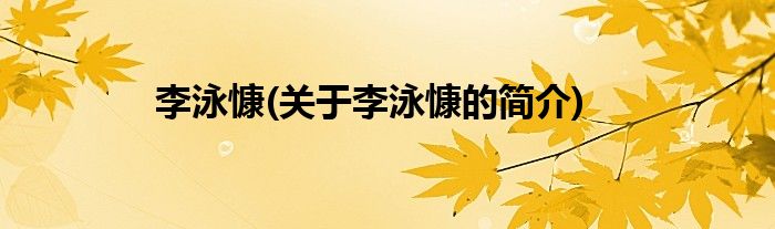 本文关于李泳慷的简介就讲解完毕,希望对大家有所帮助。