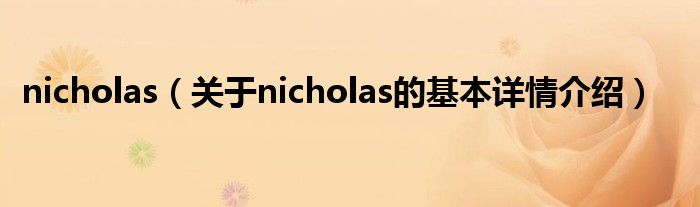 本文关于nicholas的基本详情介绍就讲解完毕,希望对大家有所帮助。