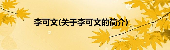 大家好,李可文,关于李可文的简介很多人还不知道,现在让我们一起来看看吧!