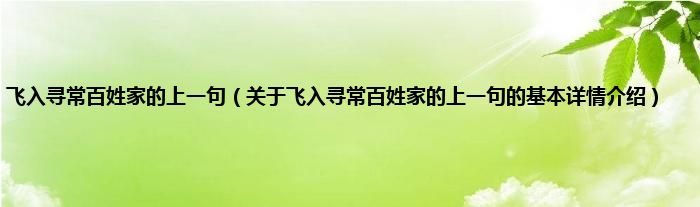 飞入寻常百姓家的上一句(关于飞入寻常百姓家的上一句的基本详情介绍)