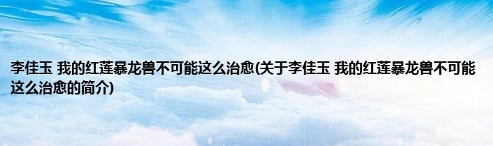 本文关于李佳玉,我的红莲暴龙兽不可能这么治愈的简介就讲解完毕,希望对大家有所帮助。