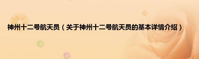 本文关于神州十二号航天员的基本详情介绍就讲解完毕,希望对大家有所帮助。