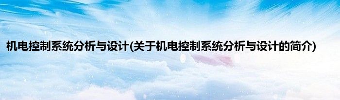 机电控制系统分析与设计(关于机电控制系统分析与设计的简介)