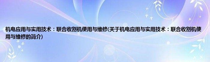 本文关于机电应用与实用技术:联合收割机使用与维修的简介就讲解完毕,希望对大家有所帮助。