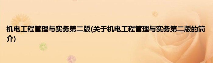 本文关于机电工程管理与实务第二版的简介就讲解完毕,希望对大家有所帮助。