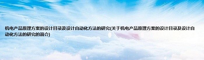 大家好,机电产品原理方案的设计目录及设计自动化方法的研究,关于机电产品原理方案的设计目录及设计自动化方法的研究的简介很多人还不知道,现在让我们一起来看看吧!