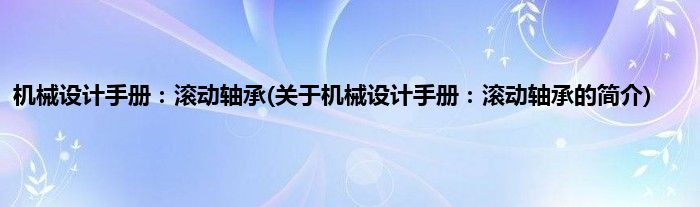 机械设计手册:滚动轴承(关于机械设计手册:滚动轴承的简介)