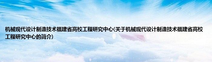 机械现代设计制造技术福建省高校工程研究中心(关于机械现代设计制造技术福建省高校工程研究中心的简介)
