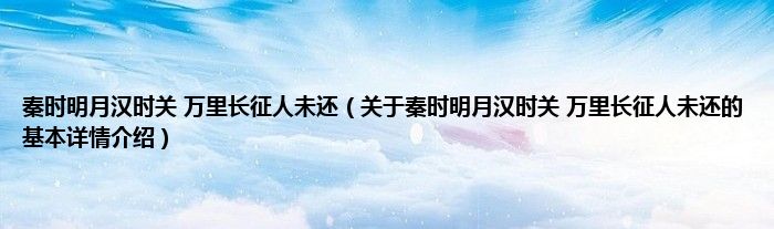 本文关于秦时明月汉时关 万里长征人未还的基本详情介绍就讲解完毕,希望对大家有所帮助。