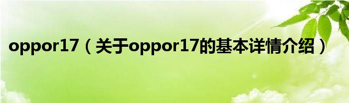本文关于oppor17的基本详情介绍就讲解完毕,希望对大家有所帮助。