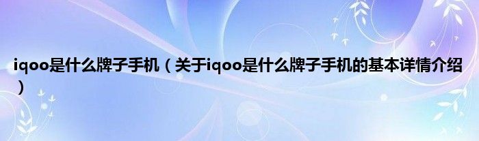 本文关于iqoo是什么牌子手机的基本详情介绍就讲解完毕,希望对大家有所帮助。